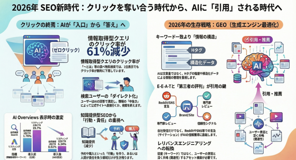 【2026年の検索生存戦略】Google 1位でも流入が消える?AI検索時代に突きつけられた「5つの衝撃」