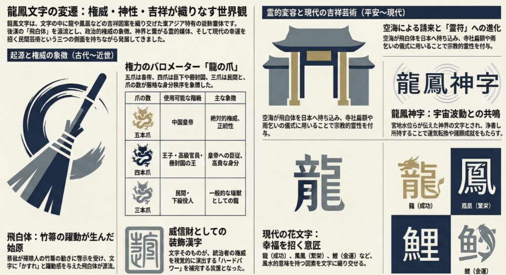 本稿を通じて考察してきた通り、龍鳳文字に代表される装飾・神秘文字の歴史は、美、権威、そして祈りが分かちがたく統合されてきた軌跡である。