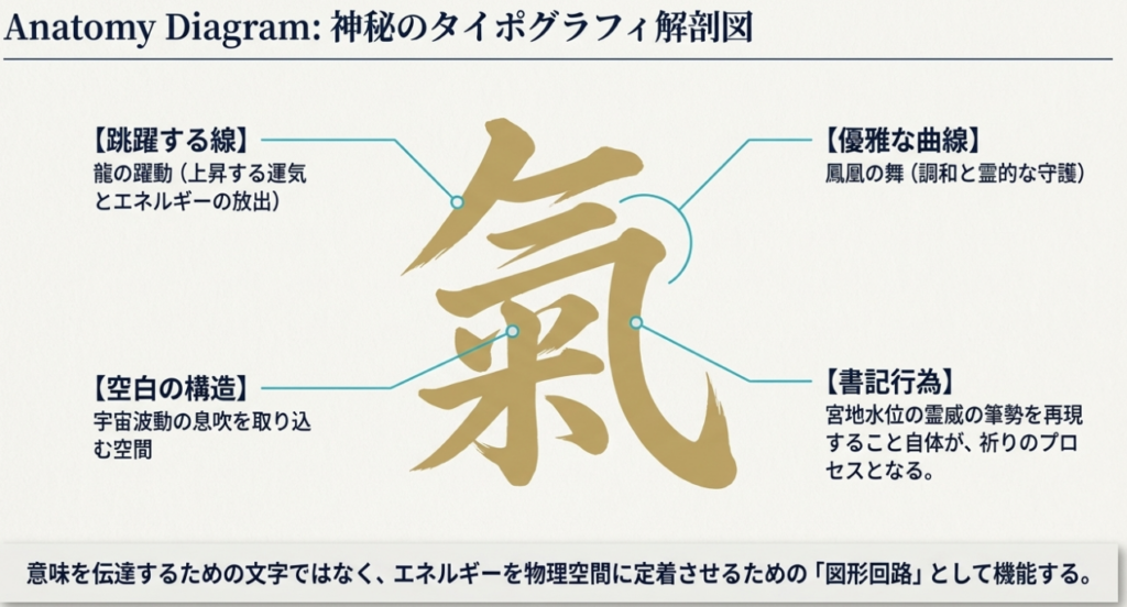 文字における「可読性(読みやすさ)」と「意匠性(美しさ)」は、しばしば相克の関係にある。しかし、歴史の転換点において高く評価されてきたのは、往々にして「判読を拒絶するほど装飾された文字」であった。なぜ機能性を犠牲にした文字が尊ばれたのか。その本質は、文字を「読む」という理性的・論理的なプロセスをあえてバイパスさせ、視覚情報として直接的に無意識へと働きかける点にある。この「読めない」という特性こそが、文字を世俗的な情報伝達から切り離し、現代で言うところの「情報空間の書き換え」――すなわち、対象の精神変容や状況の転換を促す動的なデザインへと昇華させるのである。