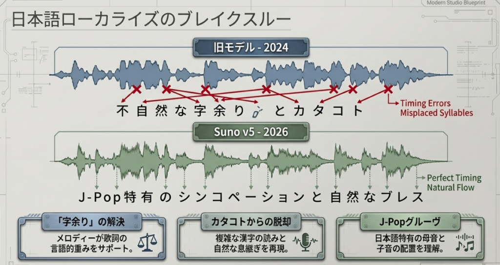 これまでAI音楽生成は、特有の「金属的なノイズ」や「霞んだ音像」といった技術的限界から、あくまでインスピレーションを得るための「おもちゃ」と見なされてきました。しかし、最新の「Suno AI V5」はこの常識を過去のものにしました。