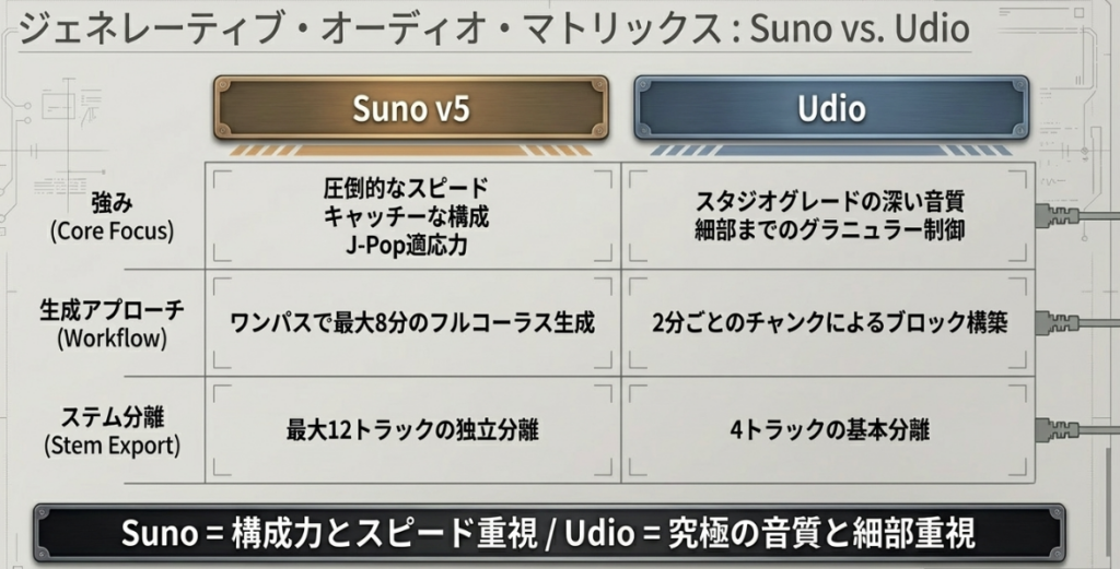 特徴 | 従来のDAW (Ableton/Logic) | Suno Studio (V5) |