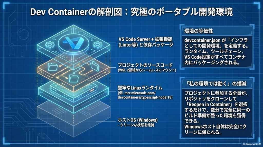 5. 「自分のマシンでは動く」の終焉:Dev Containersという標準化