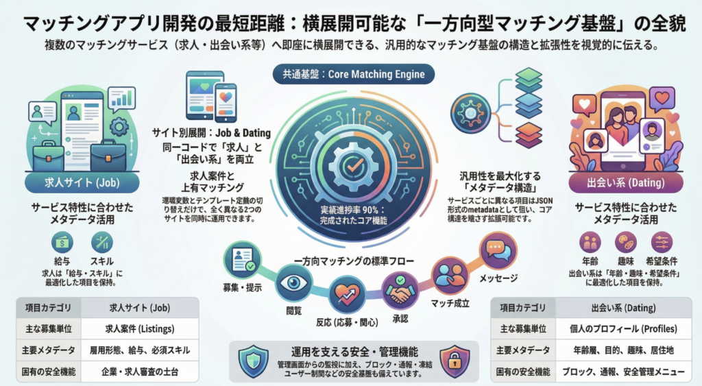 一方向型マッチングの美しい骨組みは、載せる「荷物(Metadata)」を変えるだけで、異なるサービスへと姿を変えます。