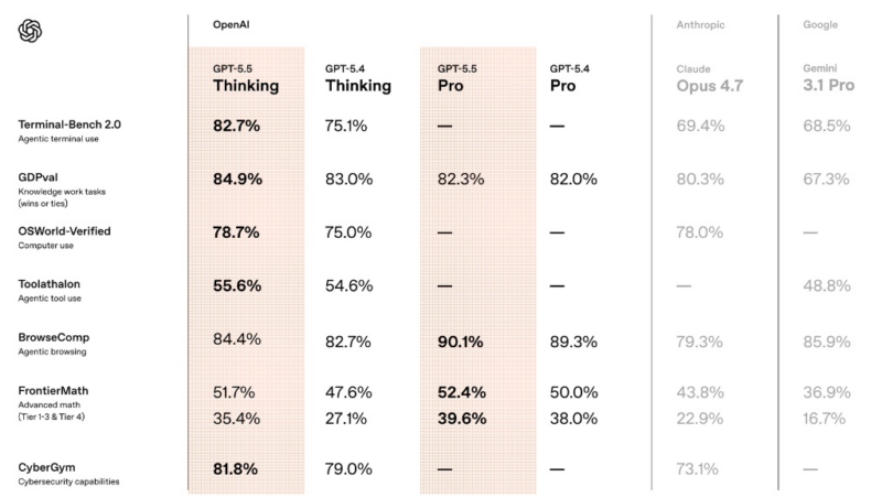このデータを見る限り、GPT-5.5は「チャットボット」という枠を超え、「自律的に仕事をこなすAIエージェント」としての完成度が極めて高いことがわかります。