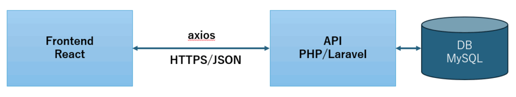ReactからサーバへのやりとりはすべてAPIをつくってやりとりしますので、DBへ直接アクセスなどはしません。